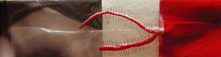 Äußertes verletzlich. Ein kleines Kleid, ein Kinderkleid – immer wieder verkörpern im Werk von angela camara correa Kleider Menschen, zarte und Entschwindende Kleider, die oft verletzt werden, empfindlich sind. Nadelstiche Des Lebens attackieren das Kleid, das Kind... Es ist wie ein Hauch – durchsichtig, wie die Ahnung eines Kindes. Dieses Kleid scheint ein vermisstes, nicht anwesendes Kind zu sein. Ein nie geborenes, ein verlorenes, ein geraubtes vielleicht? Die verlorene Kindheit? An den Wänden Zeichen der Weiblichkeit oder Umrisse von Kindern, auch sich wegdrehende Figuren, kreisende Bewegungen von Eroberung und Abwehr, von männlich und weiblich – angela camara correa lässt die Chiffren changieren, das Spiel fällt auf die Betrechtenden selbst zurück, wird zum körperlichen Gefühl von Beteiligtsein. |